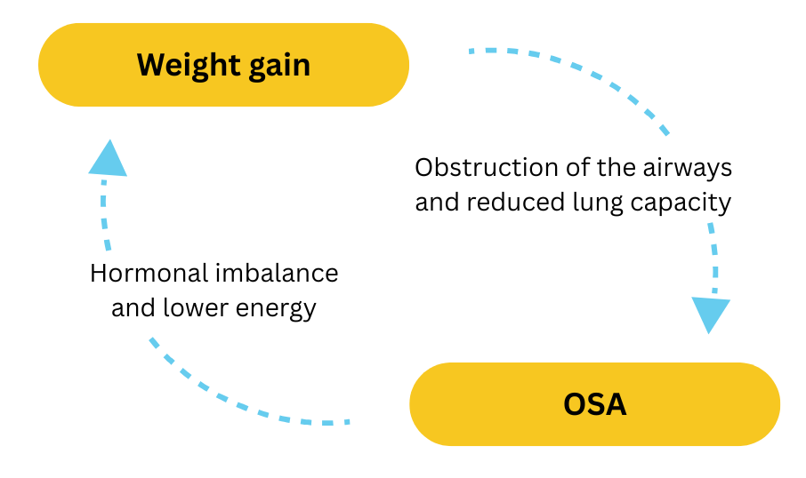 - Weight gain worsens sleep apnea: Excess weight, particularly around the neck, increases airway obstruction during sleep, making apnea episodes more frequent and severe.